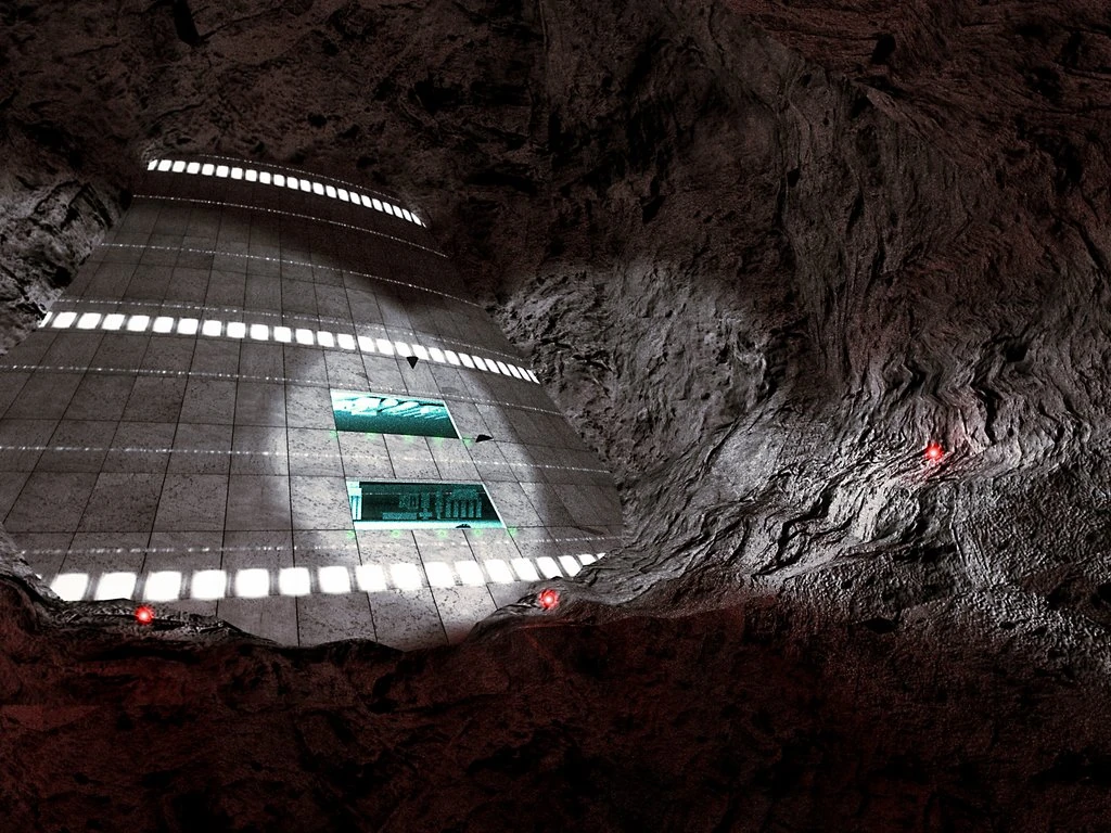 There is a lava tube skylight in the crater where LOC Alpha is. This leads into a huge lava cavern, which is part of a network of caverns connected by lava tubes. There are flight bays from top to bottom. The lower flight bay is used to fly through a lava tube to LOC Bravo.[4]